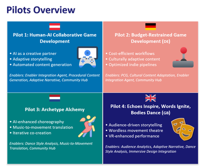The project combines technological innovation with social and ethical foresight — building a Collaborative Community Hub that connects creative practitioners, researchers, and institutions, and developing AI tools (“Enablers”) that enhance creative processes in design, performing arts, gaming, and cultural participation.