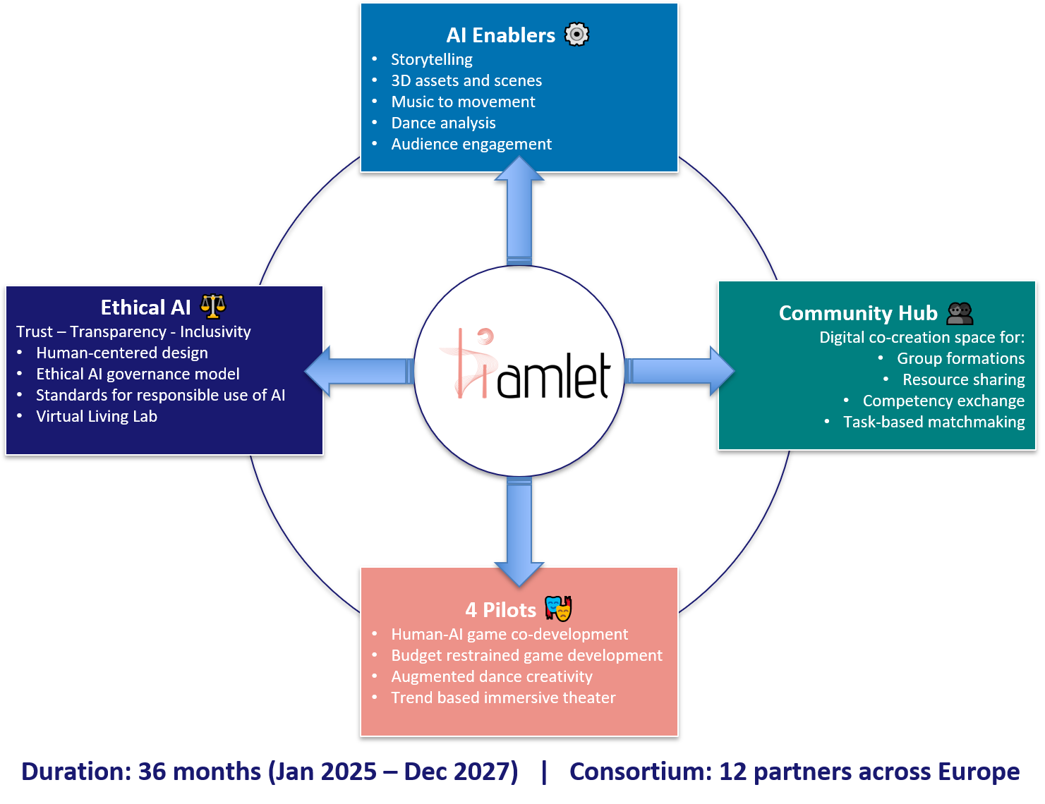 HAMLET promotes sustainable, inclusive, and collaborative models for AI-driven creativity, lowering barriers to digital transformation and enabling shared innovation across the creative ecosystem.