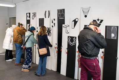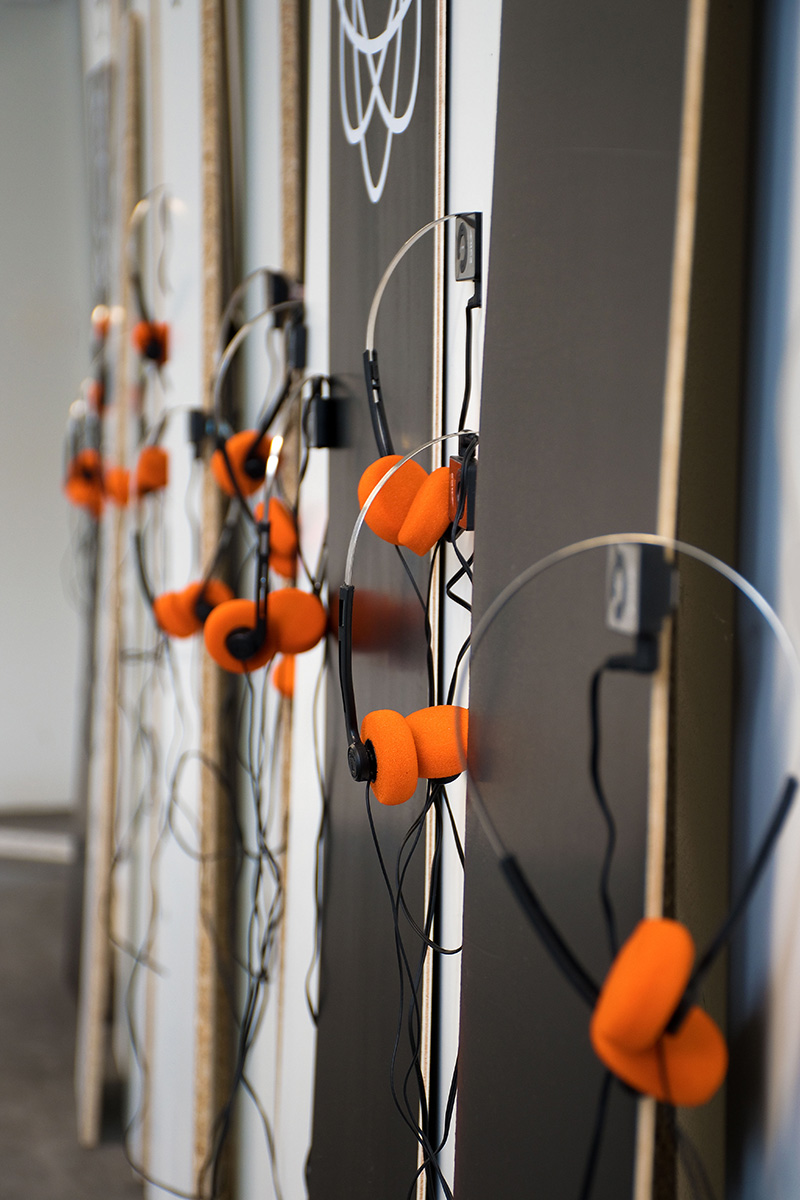 Die Klänge schallten aus Kopfhörern, verschmolzen miteinander und erfüllten den Raum mit einer einzigartigen Geräuschkulisse. Die Besucher*innen konnten an die Buchstaben