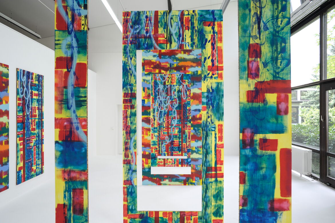 Durch den Schnitt in den Bildträger und das neue Zusammenfügen wird eine für den Raum zugeschnittene Anordnung von Malerei geschaffen. Der Ausstellungsraum bildet dabei die Grundlage der künstlerischen Arbeit. Die unterschiedlichen Bildträger liegen nicht in einer Bildebene und entziehen sich so immer wieder dem Fokus. Der Schnitt eröffnet der Farbfläche einen ganz neuen Raum und die Illusion der dritten Dimension. Während die Räumlichkeit bei einer Farbfläche darin besteht, einen virtuellen Raum entstehen zu lassen, der sich jenseits der Bildfläche eröffnet, überführt der Schnitt die Darstellung von Räumlichkeit in die Realität. Der Durchblick durch den bemalten Rahmen gibt einen realen Raum frei.
