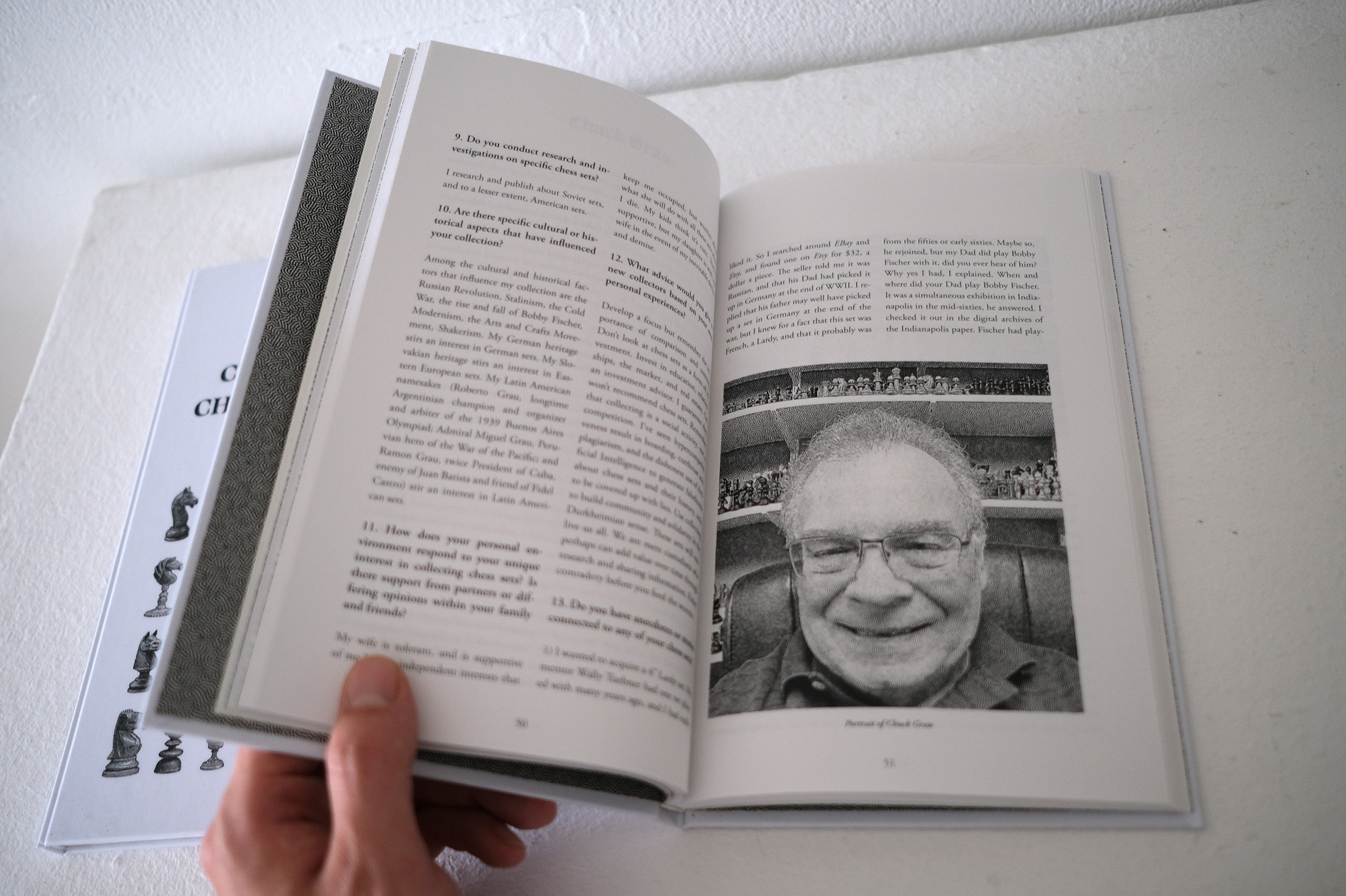 Die Interviews wurden in einem Buch festgehalten, das neben den Gesprächen auch Porträts und Abbildungen von Schachfiguren enthält, um den Menschen hinter den Sammlungen eine Bühne zu geben und sie greifbarer zu machen. Dabei war mir wichtig, dass nicht nur die Schachsets selbst, sondern auch die Persönlichkeiten der Sammler im Fokus stehen.