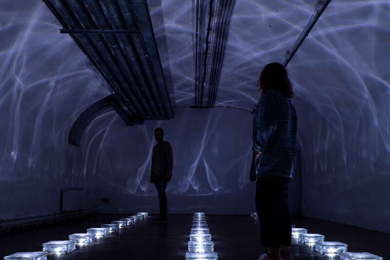Diese Arbeit beschäftigt sich mit genau diesem Licht- und Schattenspiel zwischen den zwei Ebenen des Innen- und Außenraums. Durch eine sich auf dem Boden befindende Matrix aus Glasbausteinen, welche mit LEDs ausgestattet sind, kann der Besucher durchgehen und eine Interaktion mit seinem eigenen Schatten im Raum schaffen, während sich hinter den Glasbausteinen etwas für ihn Unerkennbares abspielt und sich nur durch einen Wechsel von Licht und Schatten bemerkbar macht. Es entsteht eine Installation, welche sich durch die Aufbauform an den Raum anpasst und auf diesen eingeht. Auf diese Art und Weise wird sowohl auf materieller, als auch auf sinnlicher Ebene auf das Material eingegangen und zum Thema der Arbeit gemacht.