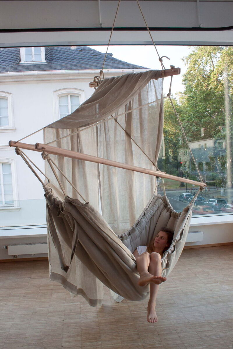 In einer Welt, die sich gefühlt immer schneller dreht, sehnen sich die Menschen nach Entschleunigung, einem Rückzugsort, Ruhe und der Verbundenheit mit der Natur. Die Gesellschaftskrankheit unserer Zeit heißt Burnout und Depression. Unsere Schlafqualität ist durch den Druck längst beeinträchtigt. Es ist bewiesen, dass Schaukeln den erholsamen Schlaf begünstigt. Diese vielseitige wiegende Hängematte für alle, sorgt als transportabler Bettersatz und Kokon für die nötige Entspannung und Ruhe, während ihr Aussehen einladend wirkt.