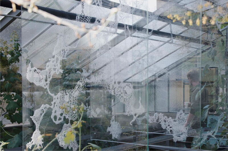 Drei großflächige Einzelobjekte sind hintereinander gestaffelt in einem leerstehenden Glasgewächshaus aufgehängt. Ein Objekt besteht jeweils aus zwei 100 cm x 120 cm Glasplatten, zwischen denen sich circa 4 mm tiefe zellenartige Gewebestrukturen befinden. Bestehend aus matt-transparenten Klebestreifen, welche mit der Klebeseite nach außen aufgerollt, zerteilt und einzeln wieder aneinander geheftet sind. Je nach Perspektive, dem Lichteinfall und der -intensität werden Teile dieses Gewebes sichtbar oder lösen sich scheinbar auf.