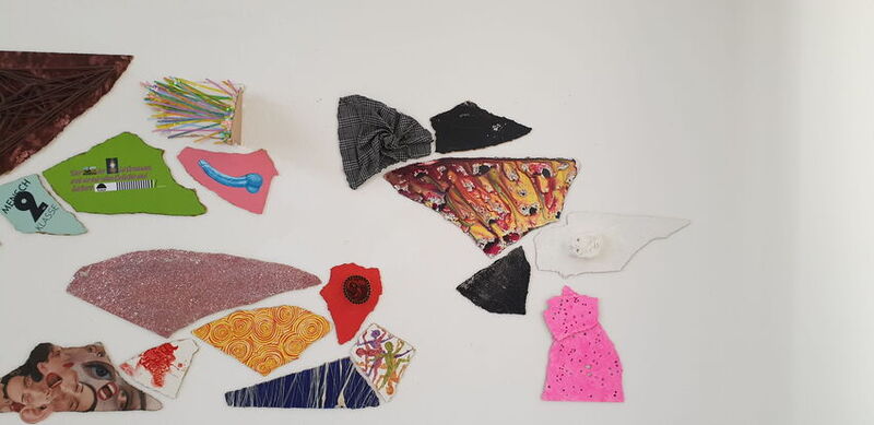 Die Tür sowie fragmentarische Bruchstücke einer abgebrochenen Wand werden objekthaft malerisch und grafisch bearbeitet und in Clustern zu einem collageartigen Wandobjekt zusammengefügt. Die einzelnen Puzzleteile übernehmen dabei symbolische Bedeutung. Sie beschreiben Teile der Persönlichkeit, erzählen von Erinnerungen.