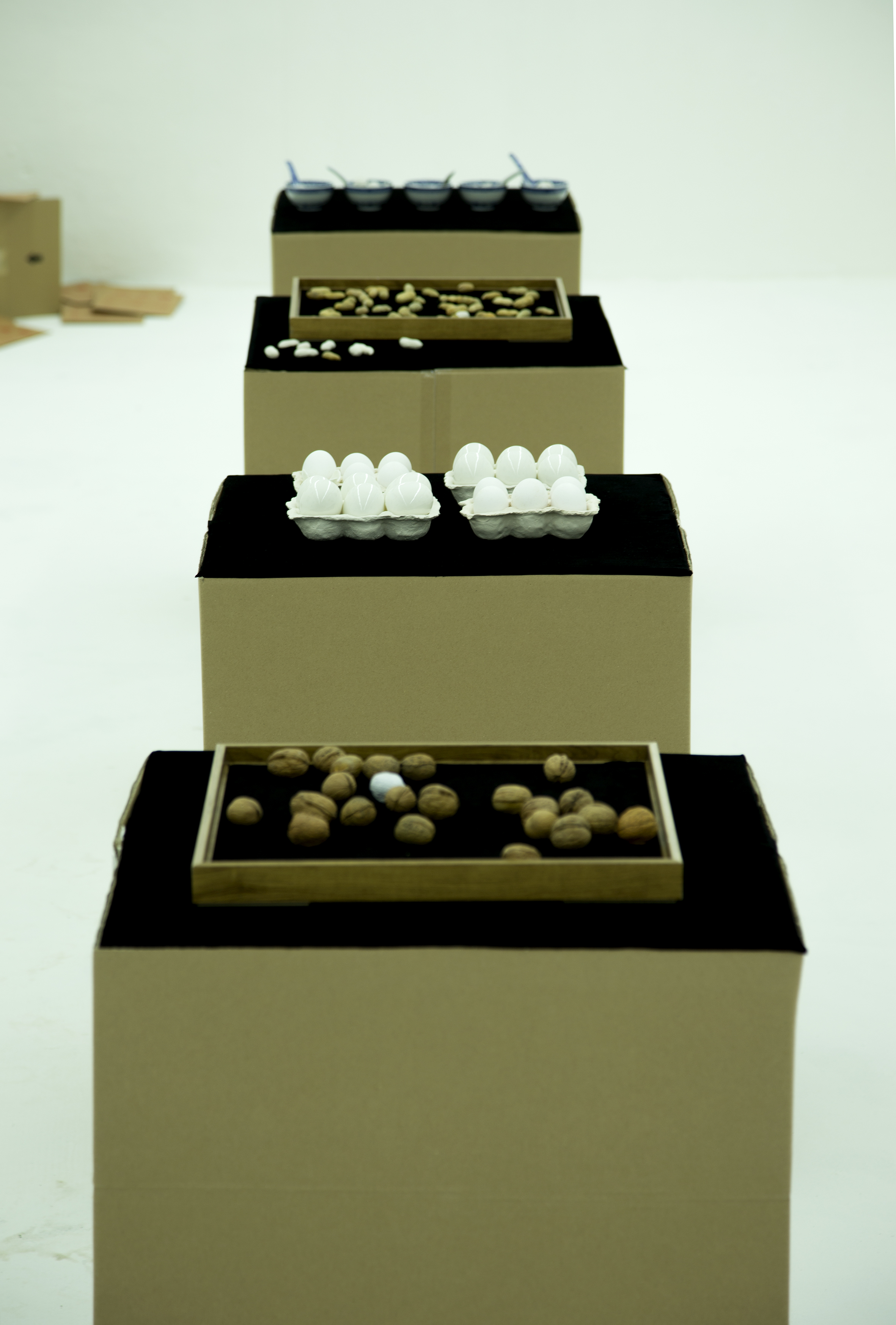Ich suche die Inspiration aus gewöhnlichen Gegenständen, die keine oder kaum Persönlichkeit sind. Ich versuche diese Gegenstände mit meiner nachgeahmten Kunst zusammen zu zeigen. Ich benutze diese schöpferische Form ohne eine Spur von persönlichen Gefühlen und in einer objektiven Einstellung, um das Objekt nachzuahmen. Im Moment der Schaustellung erwarte ich, dass die Zuschauer ein >Starren< auf die Arbeit machten, um den Unterschied zwischen Gegenstand und Kunstwerk zu erkennen. Vor dem Starren können die Zuschauer vielleicht nicht sofort erkennen, welche Kunst das genau ist, das möchte ich in dieser Serie aussprechen.