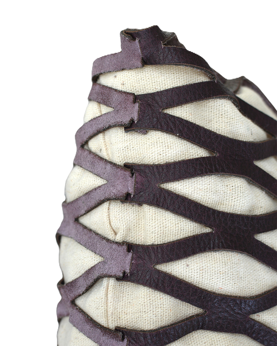 Abschließend wird ein ausgewähltes Verfahren vorgestellt, ein Konzept für das ausgewählte Verfahren entwickelt und ein darauf entstehendes Produkt, das Leathercode_Cushion, exemplarisch als Botschafter vorgestellt. Diese systemische Vorgehensweise liegt darin begründet, ein Produkt vorzustellen, welches Leathercoding als geeignetes Mittel für die Lederverarbeitung näherbringt und neue Ideen mit moderner Verarbeitungsweise anregt.