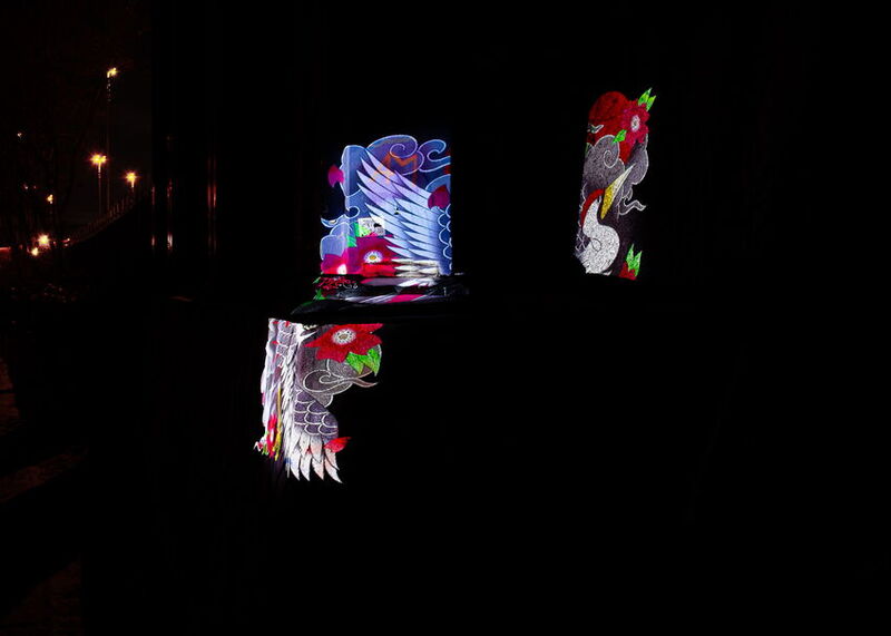 Die Grundidee meiner Masterarbeit war es, die traditionelle Form von Tätowierung aufzulösen und umzukehren. Hauptsächlich durch die Auflösung der Permanenz und das Schaffen eines temporären Kontext. Dazu illustrierte ich verschiedene Motive aus der traditionellen japanischen Tätowiergeschichte und projizierte diese mittels eines Beamers auf unterschiedliche Objekte. Durch die Auflösung der Permanenz konnte ich so noch Bezug auf das Gestaltungsprinzip von mono no aware nehmen und eine Brücke zwischen meiner Umsetzung und dem kulturellen Hintergrund schaffen. Neben der Lösung der Motive vom Körper habe ich entsprechend auch versucht, diese in Fotografien, in denen diese Arbeit am Ende festgehalten wurde, zu brechen. Dies geschah einerseits, um den Illustrationen Raum zu geben und einen dreidimensionale Körper zu schaffen, andererseits auch, um durch verschiedene Blickwinkel immer eine Variation des Bilds zu schaffen. Somit soll der Betrachter seinen eigenen Zugang zu den Motiven und der Tätowierkunst finden können. Dieser Bruch der Motive sollte auch im symbolischen Sinne einen Bruch von Erwartungen und von Vorurteilen gegenüber Tätowierten darstellen. Diese Vorurteile sind leider bis heute gerade in Japan noch sehr verbreitet.