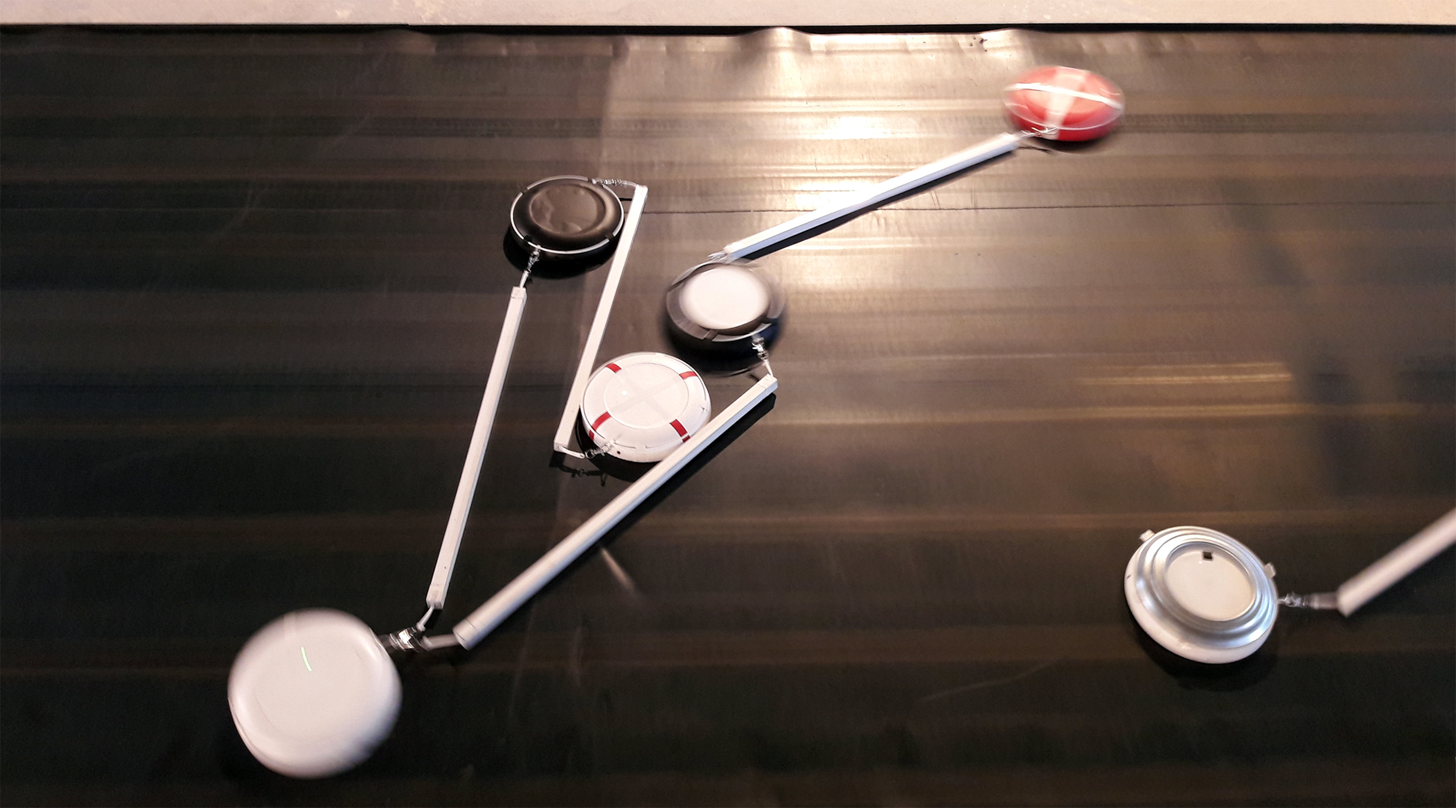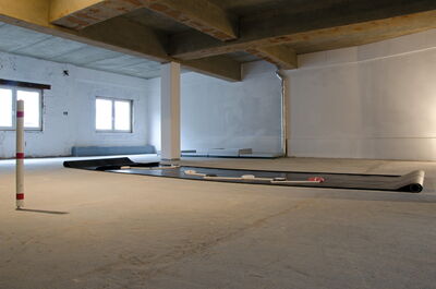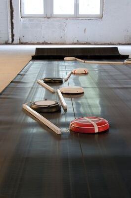 Hauptakteure auf einem Parkdeck sind von Menschen gelenkte Automobile; in der Ausstellung „Parkdeck“ steuern modifizierte Staubwischroboter die Installation. Es sind programmierte, autonome Maschinen, die zur Reinigung des Fußbodens entwickelt und industriell produziert sind. Visuell wahrnehmbar als Punkt sind sie Teil einer beweglichen Zeichnung und bilden zusammen mit linearen Gestaltungselementen eine performative Installation, in der sich temporäre Zeichnung mit Punkt und Linie auf einer definierten Fläche immer wieder neu formt.