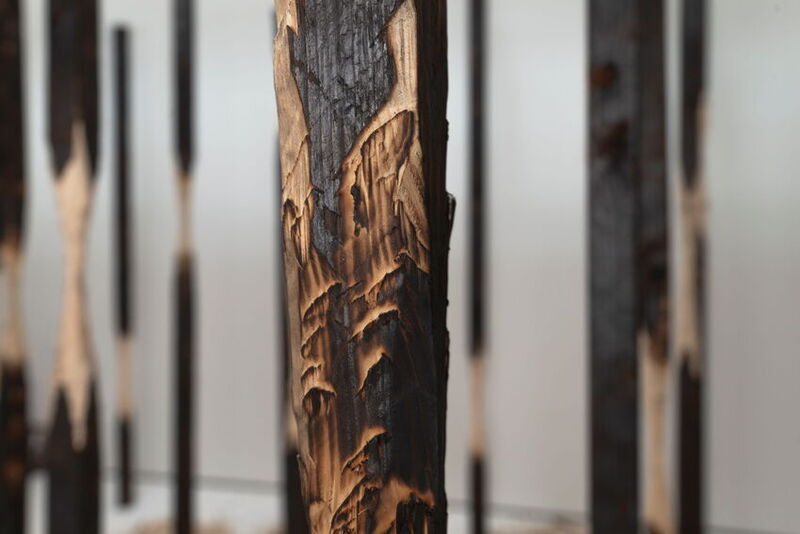 Carlos Molina: Reading the matter (die Materie lesen), Master Freie Kunst, 2022, Holz, Holzspäne, 200 x 330 x 330 cm, Detail der Installation