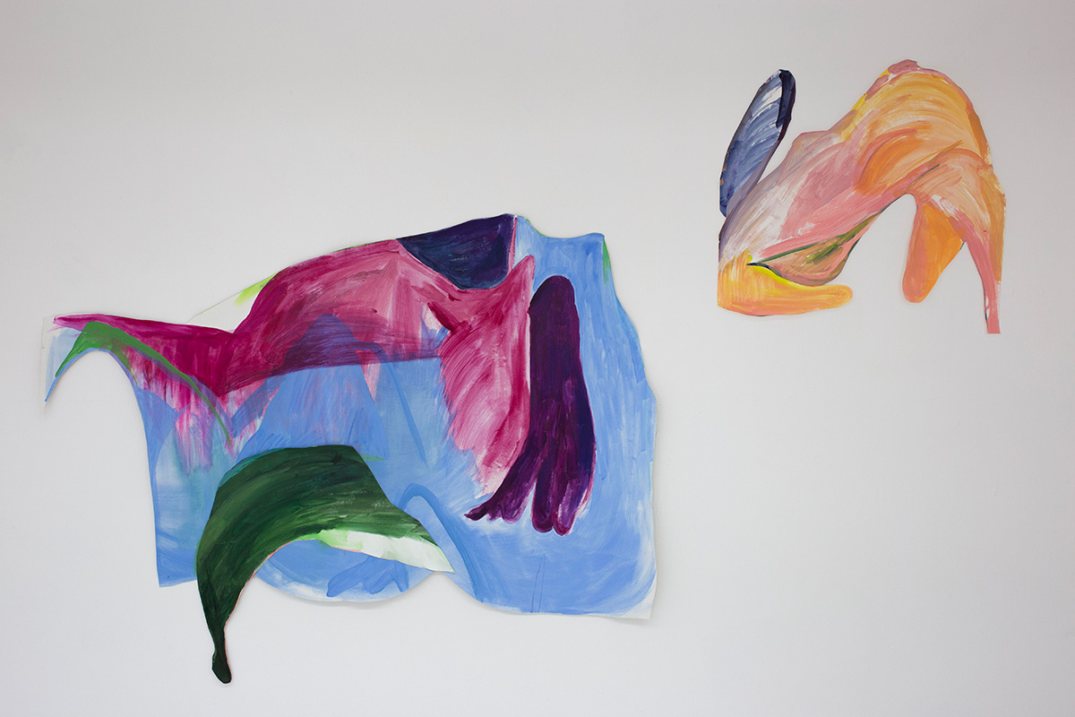 Meine Arbeiten sind keine gesamtheitlichen Malereien, die eckig eingerahmt werden sollen. Jedes Bildelement bringt seinen eigenen Zustand und seine eigene Geschichte mit sich. Deshalb schaue ich mir den Raum vor Ort an, entwickle eine passende Geschichte, die zum Raum passt, und überlege, wie ich die einzelnen Bruchstücke platzieren kann. Der Installationsprozess ist dabei genau derselbe wie der Malprozess.