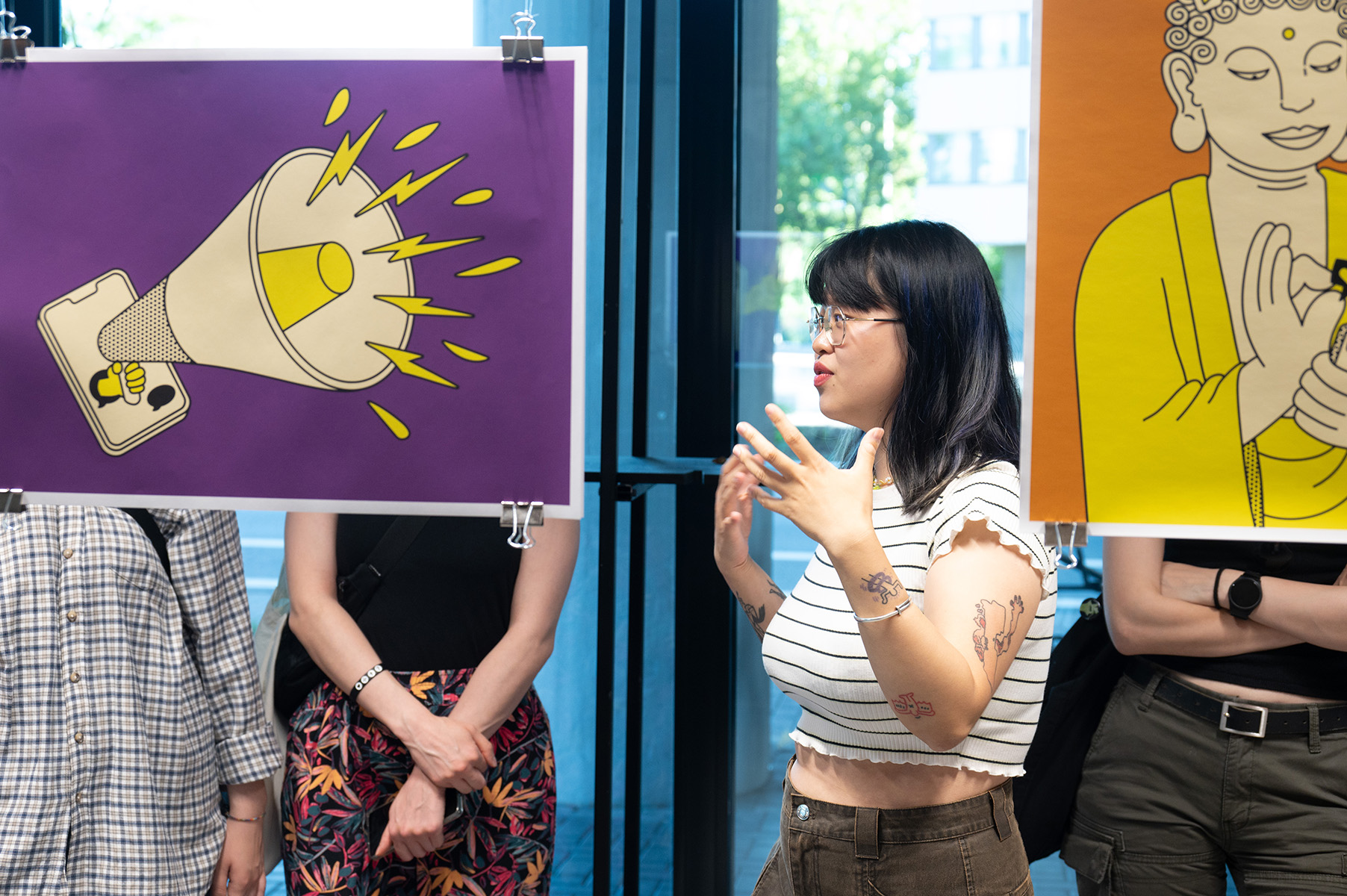 Gleichzeitig stellen die sozialen Medien neue Herausforderungen für die Privatsphäre, die Sicherheit und die psychische Gesundheit dar, sodass mein Abschlussprojekt darauf abzielt, eine Ausstellung zu kuratieren, die sich mit diesem Thema durch verschiedene visuelle Ausdrucksformen auseinandersetzt. Die Ausstellung wird eine Vielzahl von visuellen Kunstformen umfassen, darunter illustrierte Poster, Animationen und interaktive Sitzungen, um die Aufmerksamkeit des Publikums zu wecken und es mit vielfältigen Inhalten und Formen zur Teilnahme zu bewegen. Die illustrierten Plakate werden die verschiedenen Aspekte der sozialen Medien durch lebendige Bilder vermitteln, während die Animationen das Publikum dazu bringen werden, die multidimensionalen Auswirkungen der sozialen Medien durch dynamische Ausdrucksformen zu erleben. Die interaktiven Sitzungen sollen das Publikum dazu ermutigen, sich auf eine intuitivere Art und Weise zu beteiligen, um die Rolle der sozialen Medien zu spüren und darüber nachzudenken.