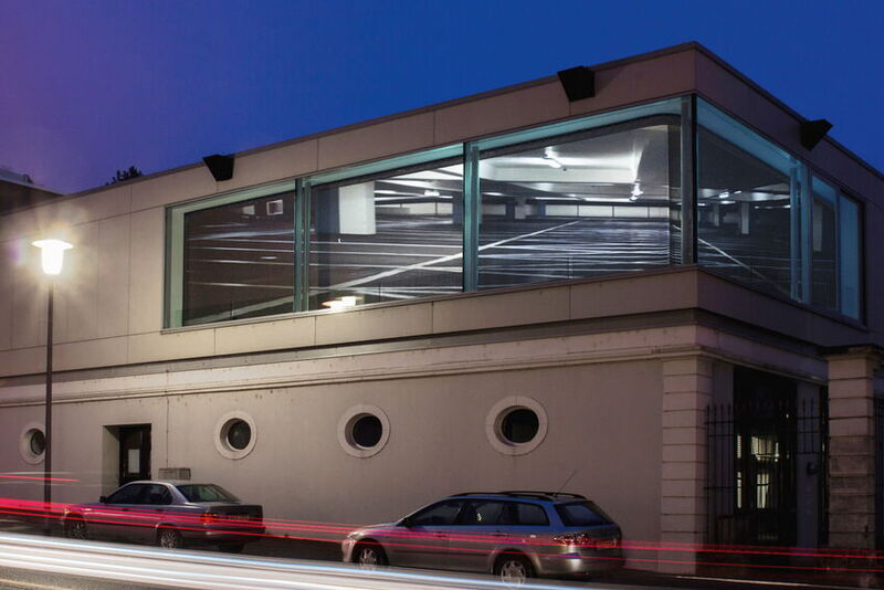 Ein leeres Parkhaus hinter Glas. Eine nie endende, ziellose Fahrt durch einen nur als medialisierte Vorstellung in unseren Köpfen bestehenden Un-Ort. Ein nicht existenter grauer Raum, an dem Autos vorbeifahren.