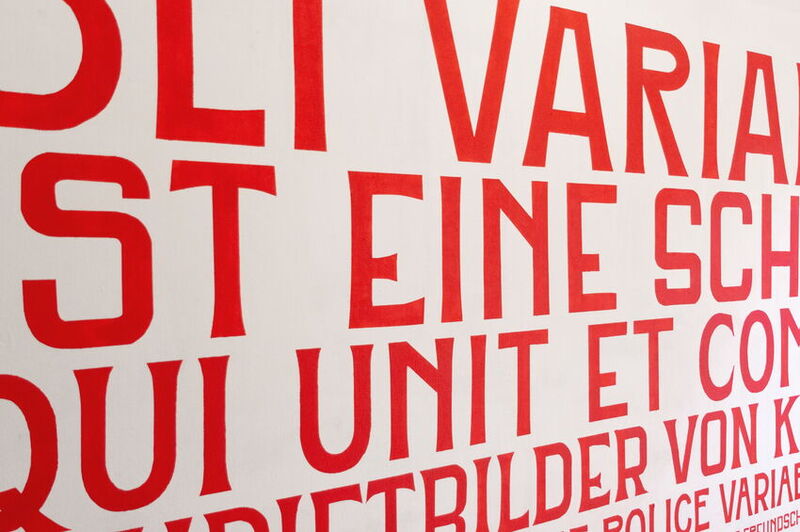 Niklas Reiprich: Typographie Transfrontalière: Eine Schrift für Kleinbli und Großbli, Bachelor Kommunikationsdesign, 2023, Ausschnitt Schriftprobenwand, Foto: Vivianne Hell