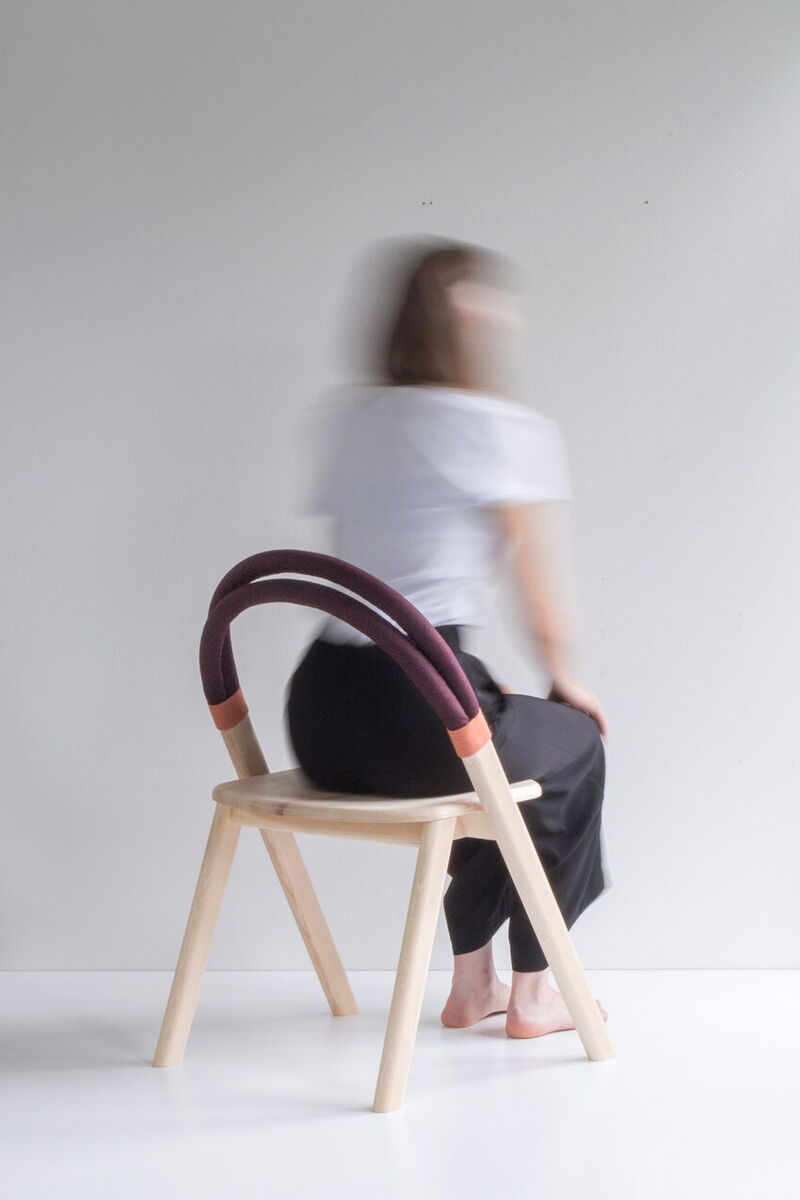 Kilar ist ein eleganter Entwurf, dessen Konstruktion auf die Arbeit des Peitschenmachers Bezug nimmt. Die schwingende Rückenlehne aus gepolstertem Federstahl ist inspiriert von den Handgriffen dieses alten Berufs und behält die Technik in verändertem Kontext bei.