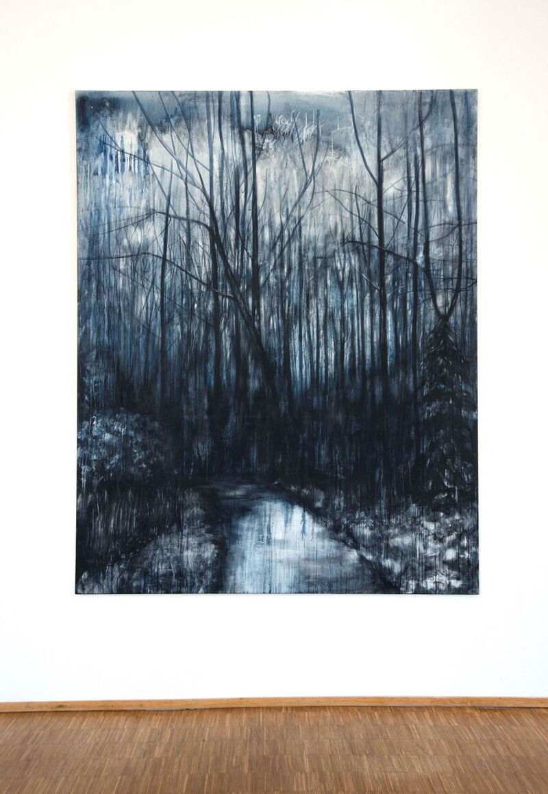 Das Haus verliert nichts, der Wald gibt nichts mehr her. Wälder, in unserer Welt immer rarer werdend, sind Räume, die gleichermaßen einladend und bedrohlich wirken. Angst und Faszination versetzen mich bei jedem Betreten eines solchen Raumes in einen paradoxen Zustand. Dieses Erlebnis ist stets aufs Neue Auslöser eines Bestrebens, es durch meine Malerei für Andere erfahrbar zu machen.