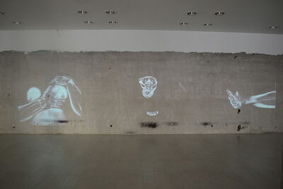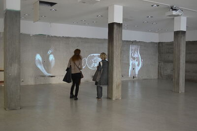 Beim Betrachten der projizierten Videosequenzen sind weiche Bewegungen abstrakter Formen sichtbar, die nach und nach die Formen des menschlichen Körpers wiedererkennen lassen, um sich dann wieder zur Abstraktion des Körperlichen/Anatomischen zu verwandeln.