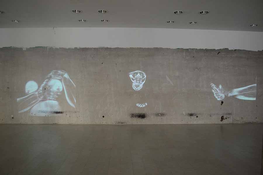 Aus den in Zusammenarbeit mit der Radiologie Saarbrücken, Herrn Dr. Rosar und dem MTRA Herrn Grunwald erzeugten Bildern, entstehen schließlich Sequenzen, die in einen räumlichen Zusammenhang gebracht werden und die architektonischen Gegebenheiten und Strukturen aufgreifen.