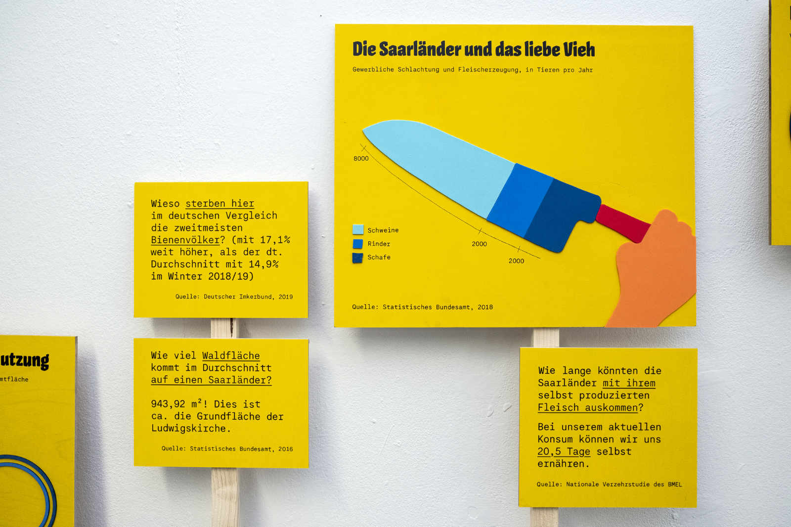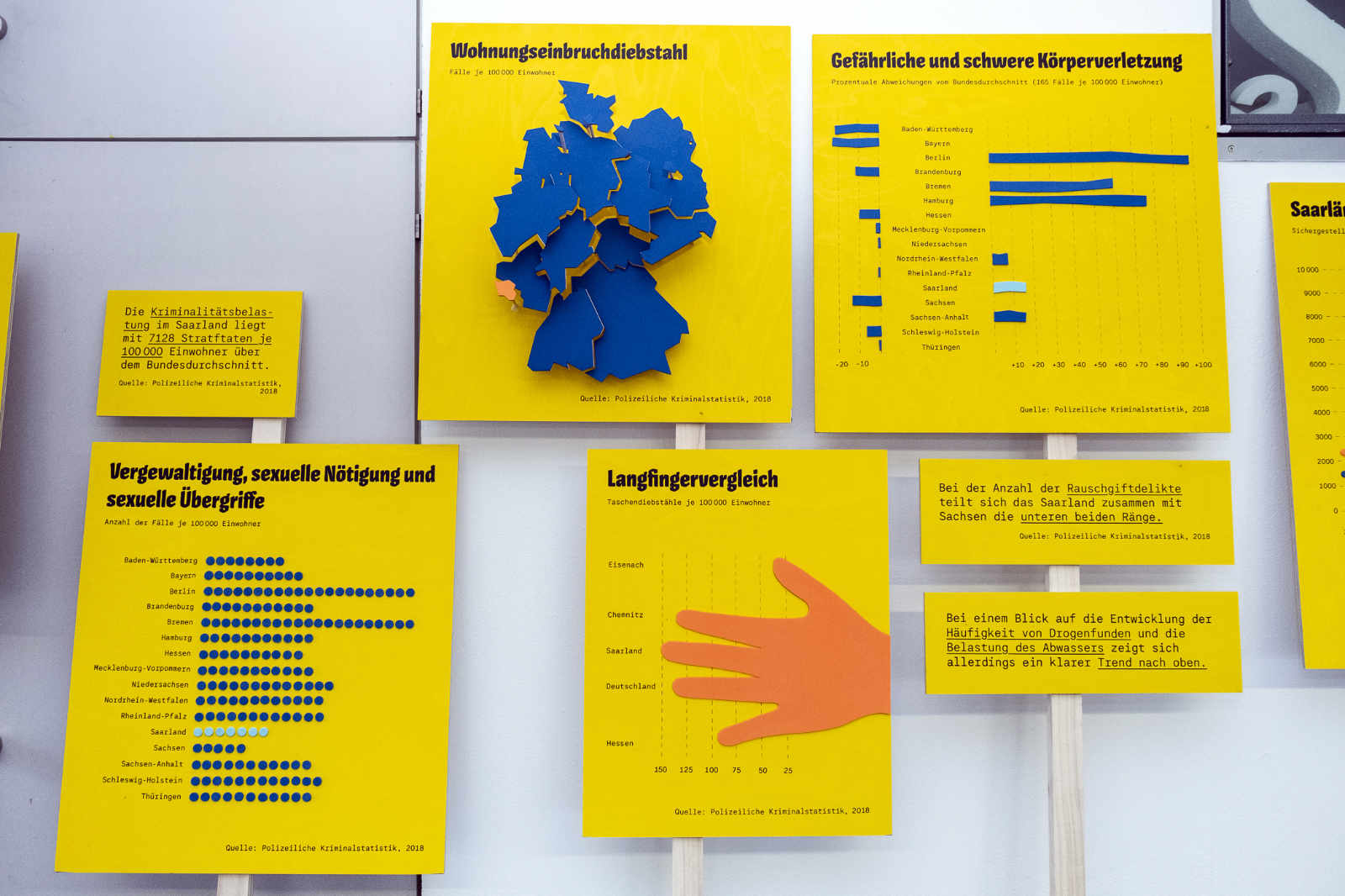 »Das Saarland in Zahlen« ist als Atelierprojekt im Wintersemester 2019/20 im Studiengang Kommunikationsdesign der Hochschule der Bildenden Künste Saar (HBKsaar) entstanden, betreut von Prof. Indra Kupferschmid.